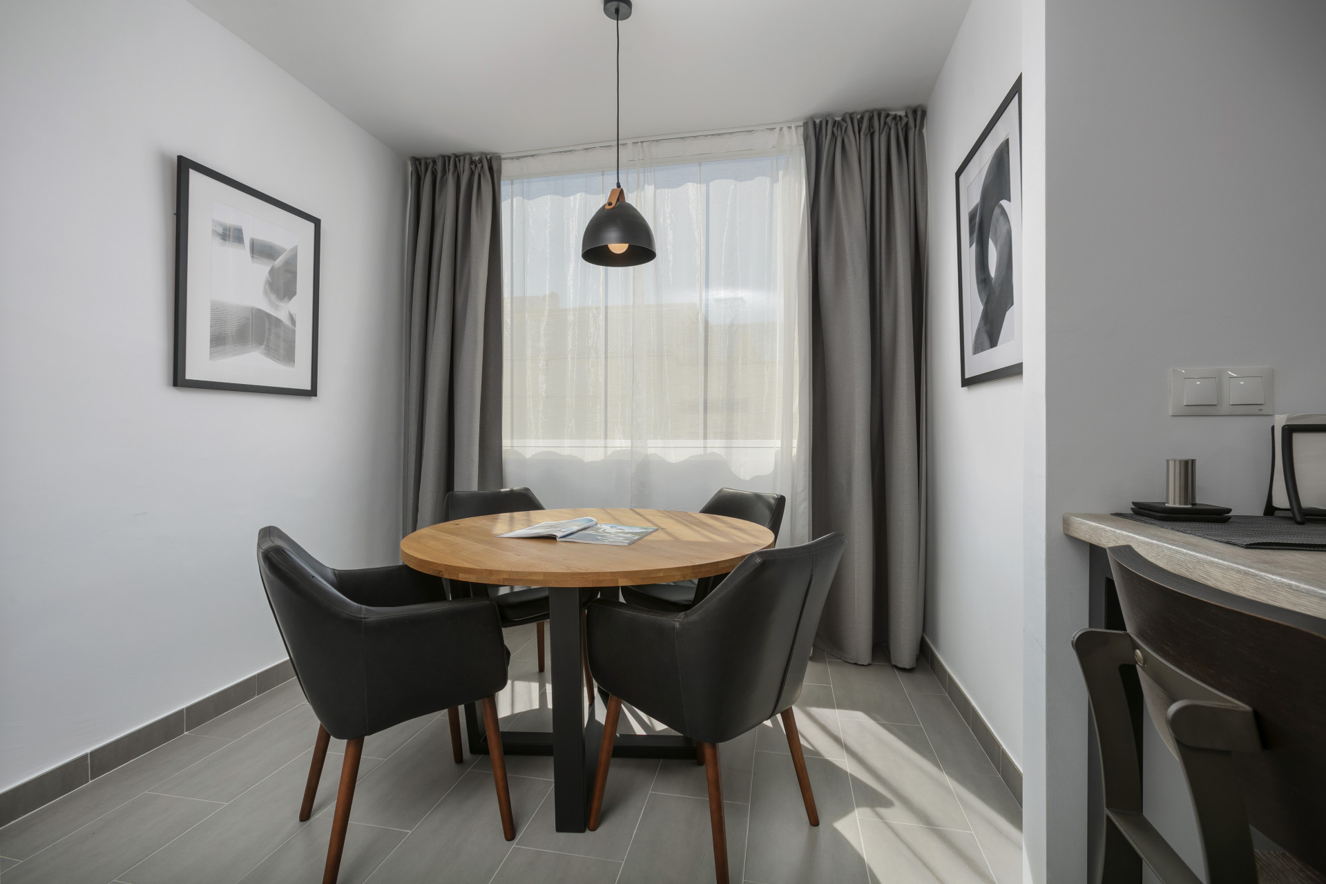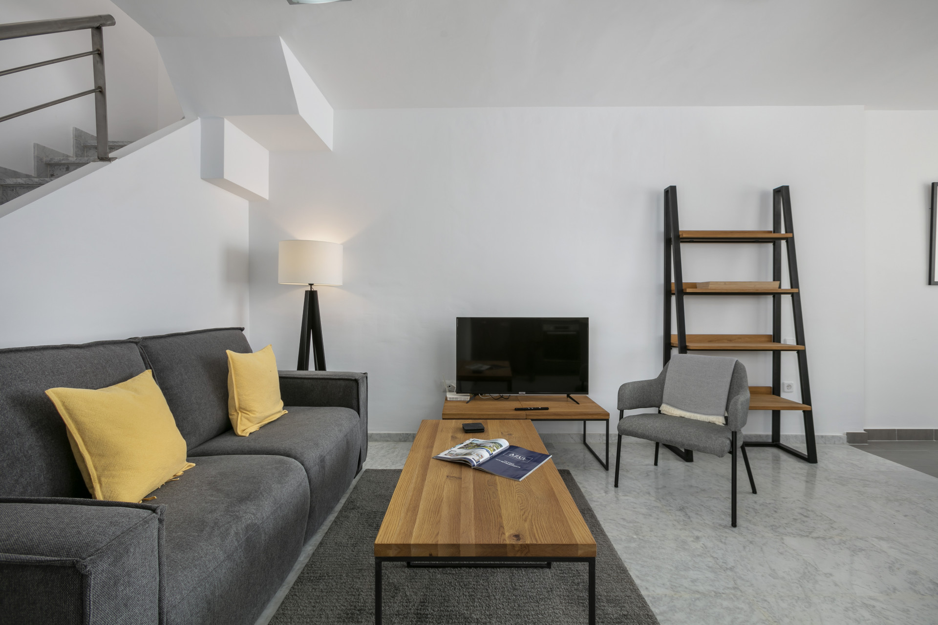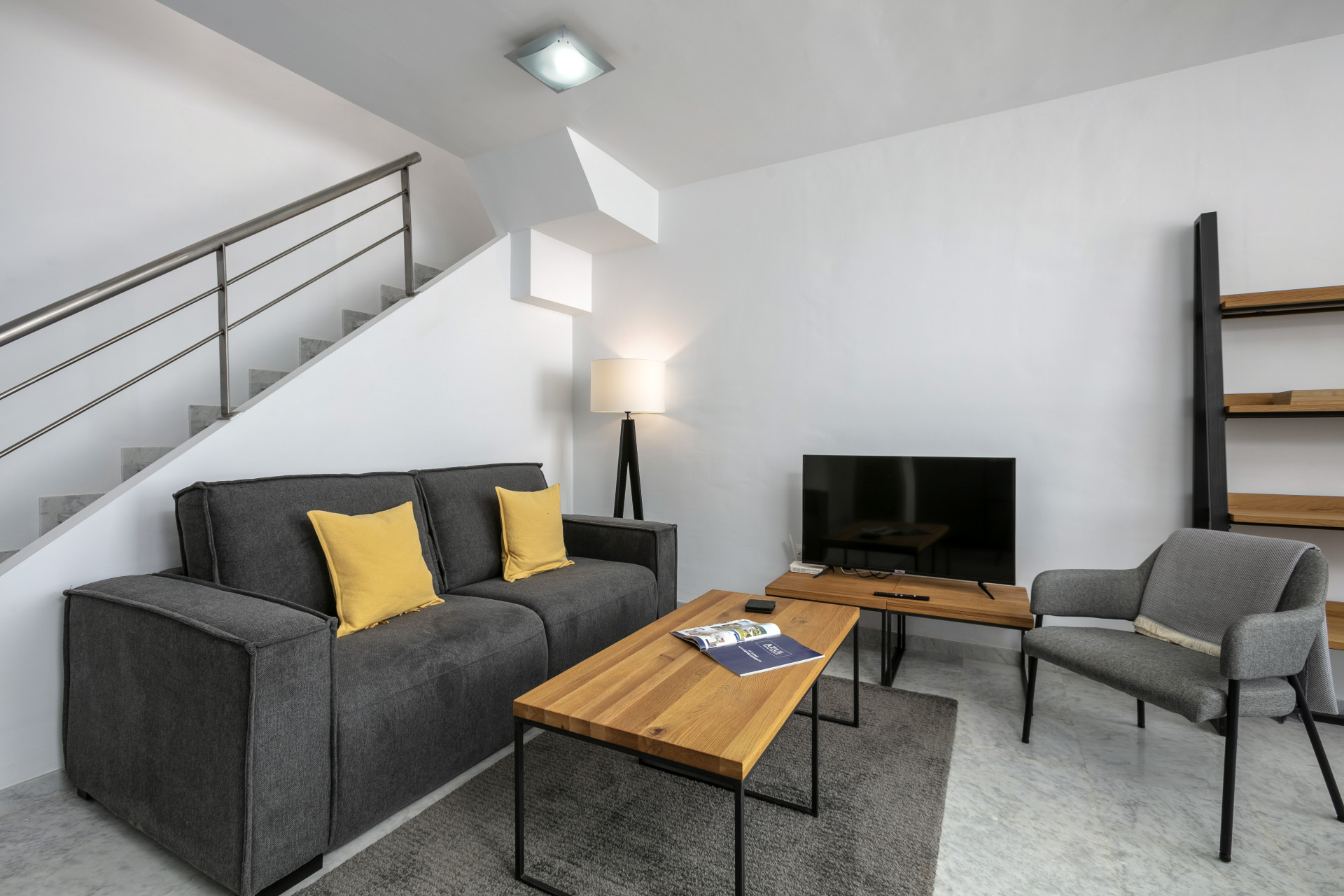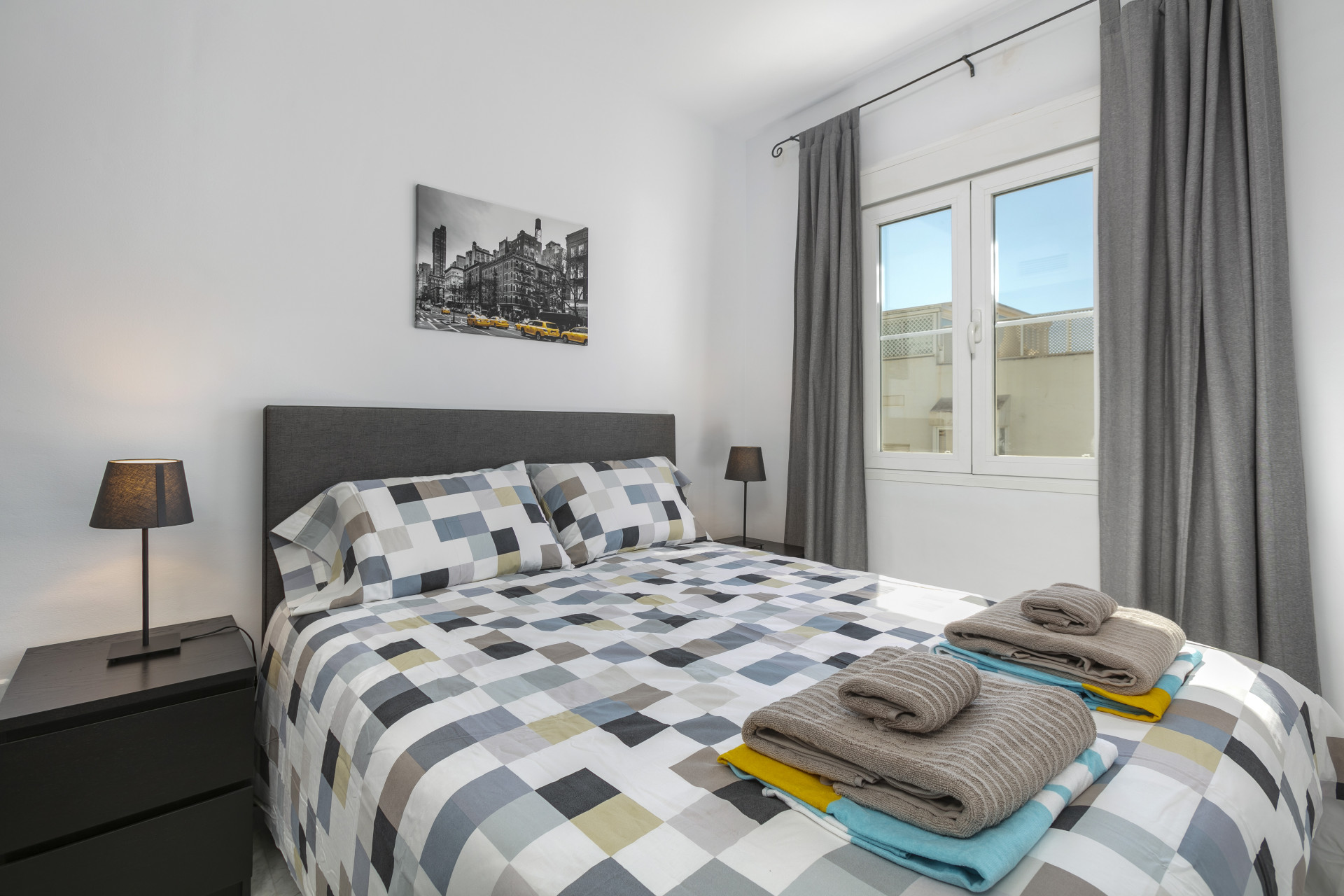 El apartamento consta de un salón abierto, cocina y comedor, con muebles y electrodomésticos nuevos. Todo el espacio es luminoso y abierto, perfecto para socializar y relajarse con la familia en los cómodos sofás y sillones, o en el comedor con vista al mar. El pasillo te lleva al dormitorio principal con cama king size y un amplio baño con ducha a ras de suelo.