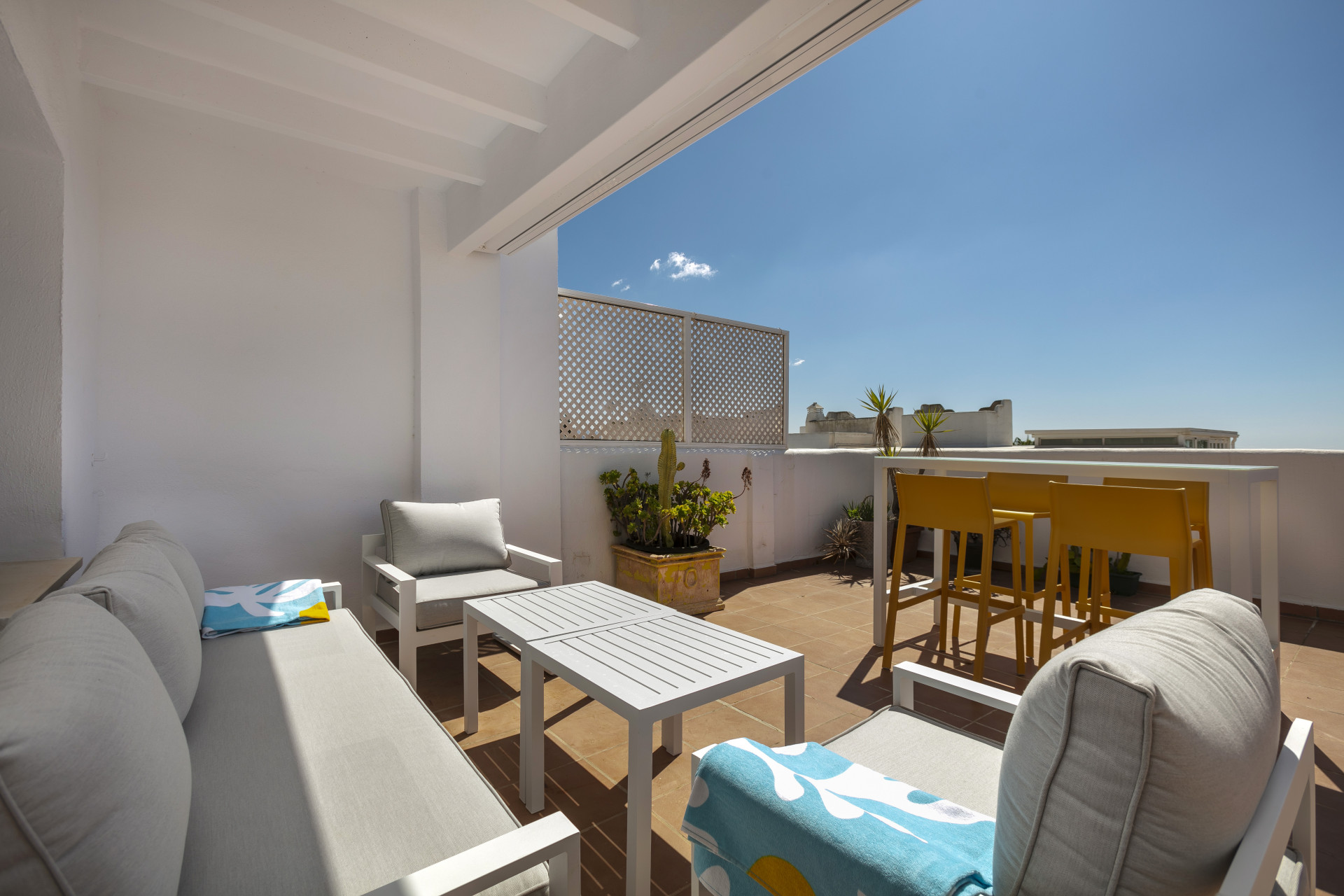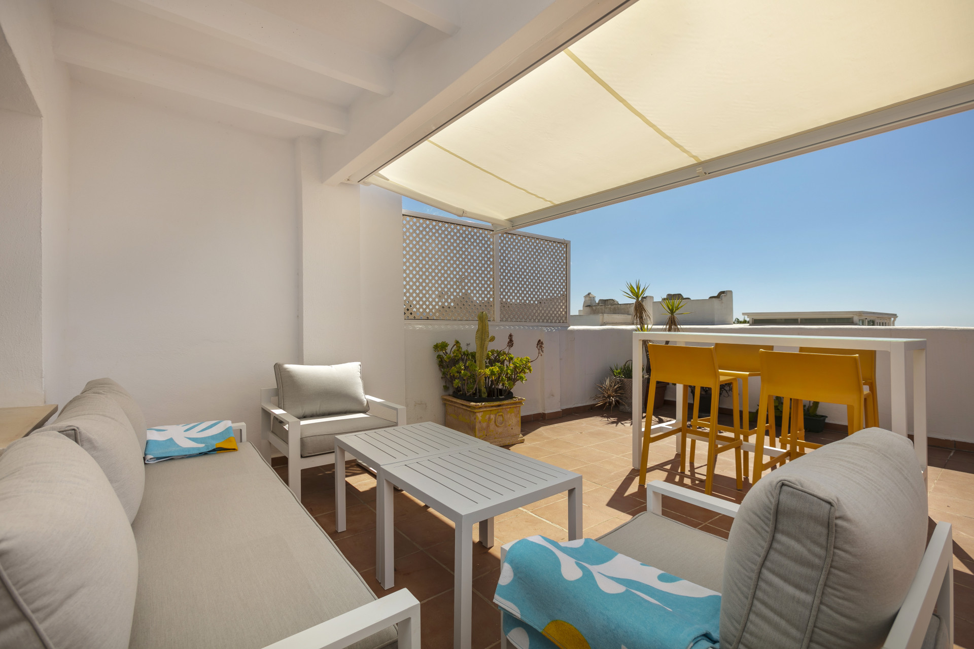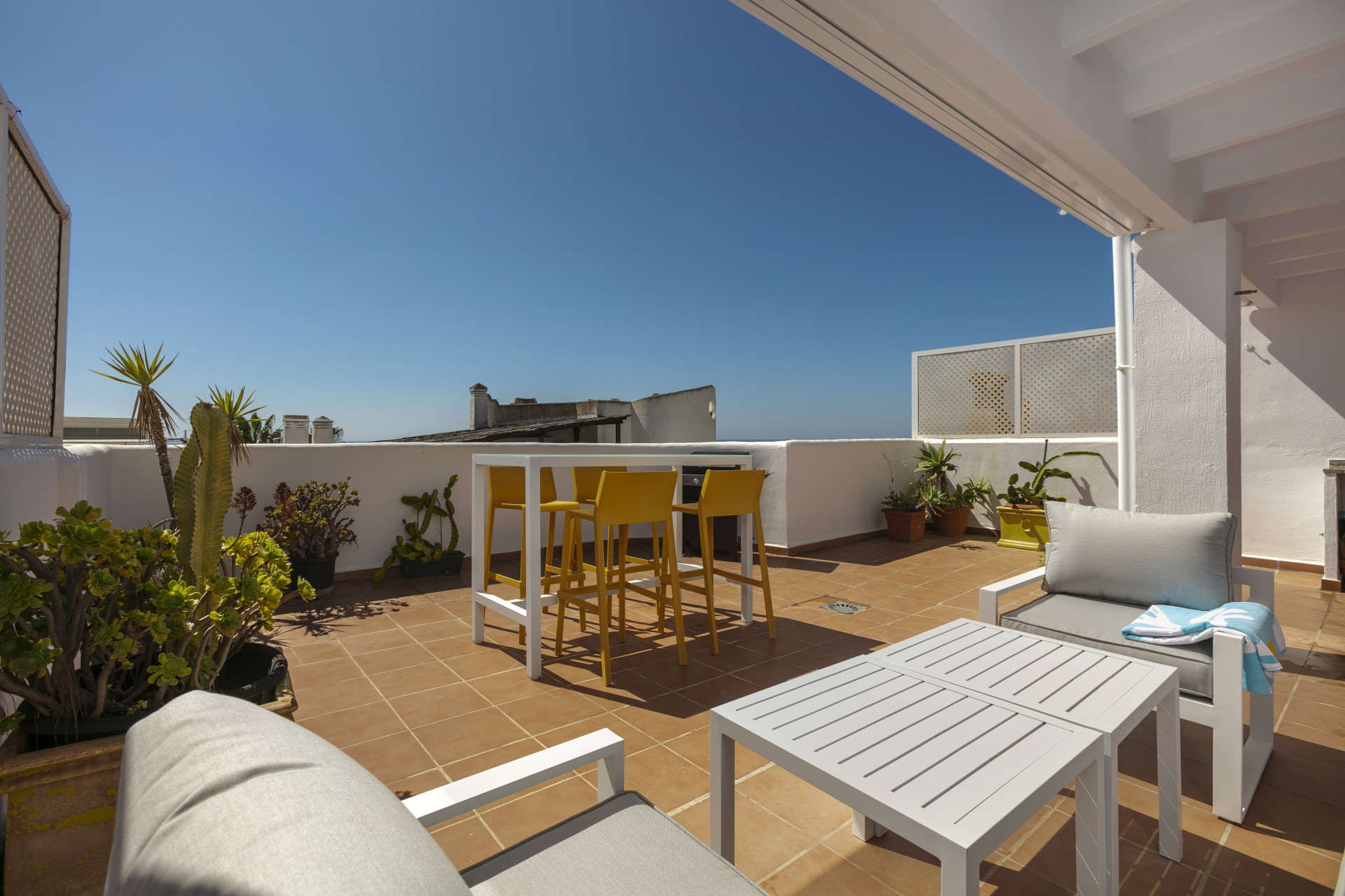 Un apartamento Golden Mile recientemente reformado ubicado en una hermosa comunidad. La propiedad ha sido decorada con un estándar muy alto en todas partes; con una cocina moderna y elegante y una sala de estar abierta. Sin embargo, la característica más destacada es la enorme terraza en la azotea con vistas al mar hasta Gibraltar y el norte de África en días despejados. Este espacio exterior privado también cuenta con una mesa de comedor/bar móvil y un conjunto de lujosos muebles de exterior y una ducha al aire libre, perfectos para aprovechar al máximo el clima soleado de Marbella durante todo el año. El apartamento se encuentra a pocos pasos de la playa de Casablanca, la mejor de Marbella, con restaurantes exclusivos, bares relajantes y cafeterías con estilo.